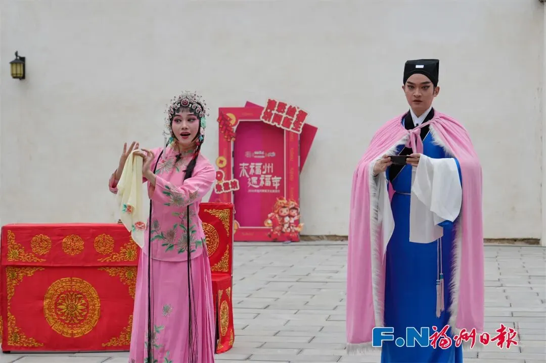一位来自浙江的游客与哥哥、妈妈一同自驾来榕过年,他们的旅游主线是“接福运、寻福像、找福味”。在朱紫坊游览时偶遇这场快闪,她激动地说:“没想到能在这里欣赏到国家级非遗闽剧,演员们的表演太精彩了!这一路上我们感受到了福州浓浓的年味和满满的福气,真是一座有福之城!”