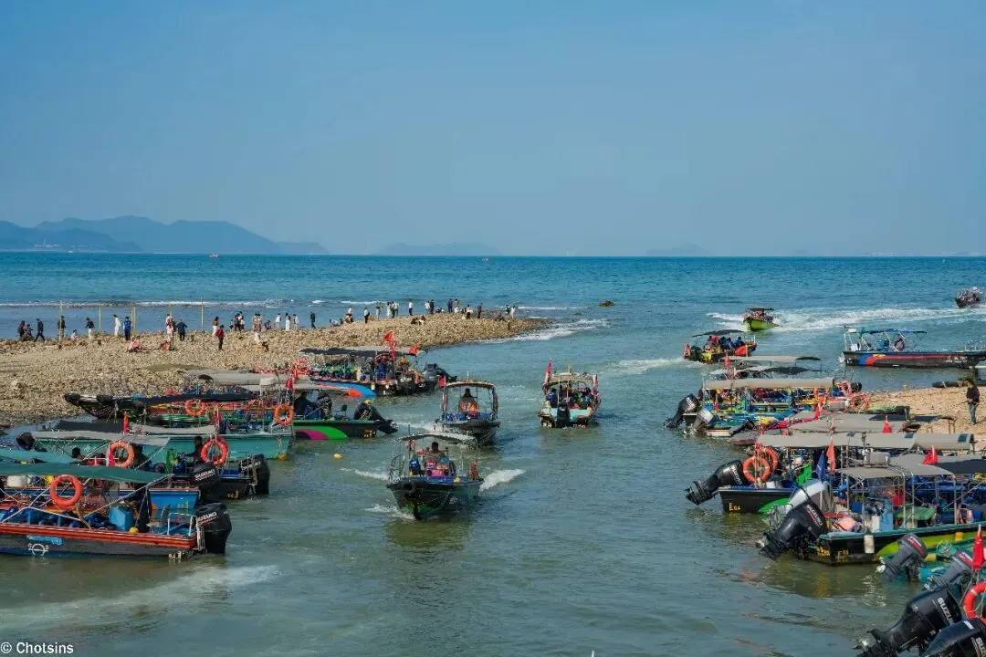 停车场坐大飞或景区观光车到鹿嘴金鹿银滩,超级多人……