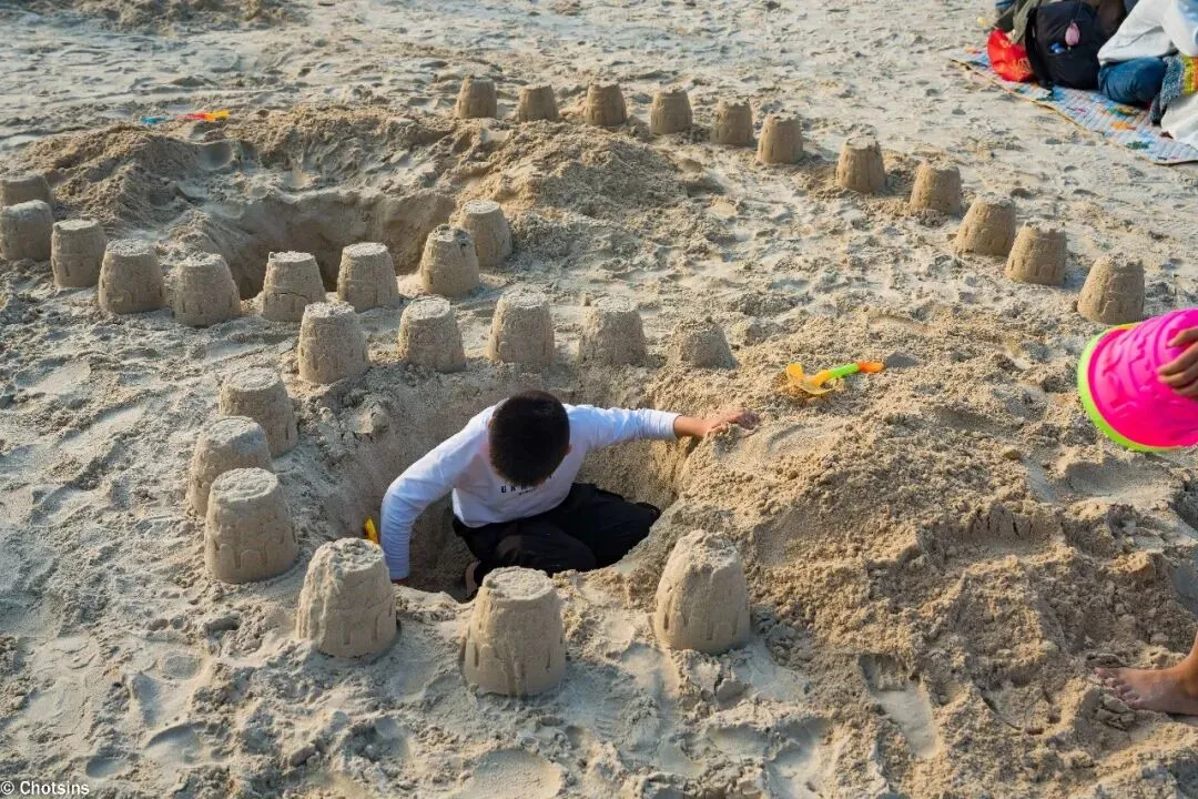 果然,不出所料,人山人海,天气冷,连比基尼辣妹都没,还不如看小朋友玩泥沙~