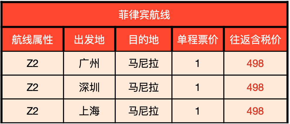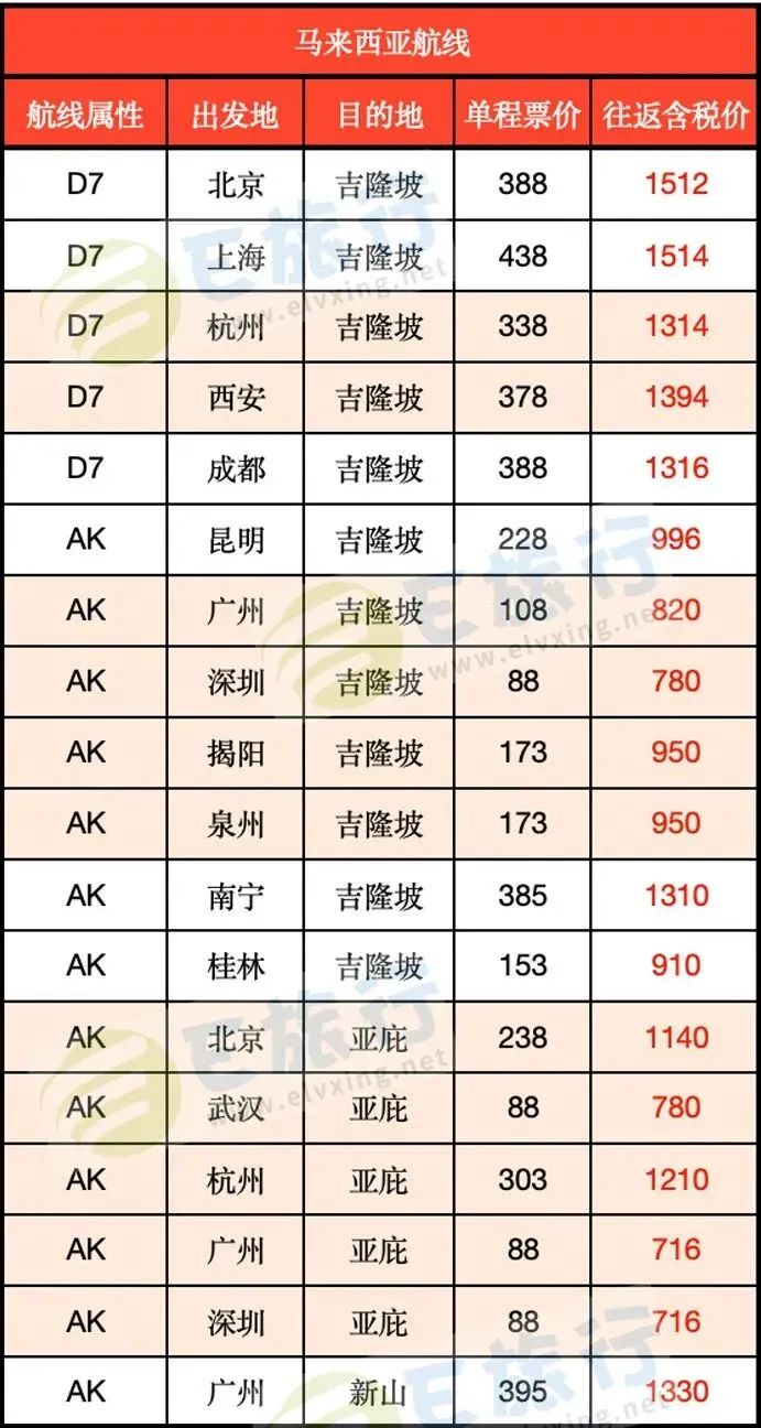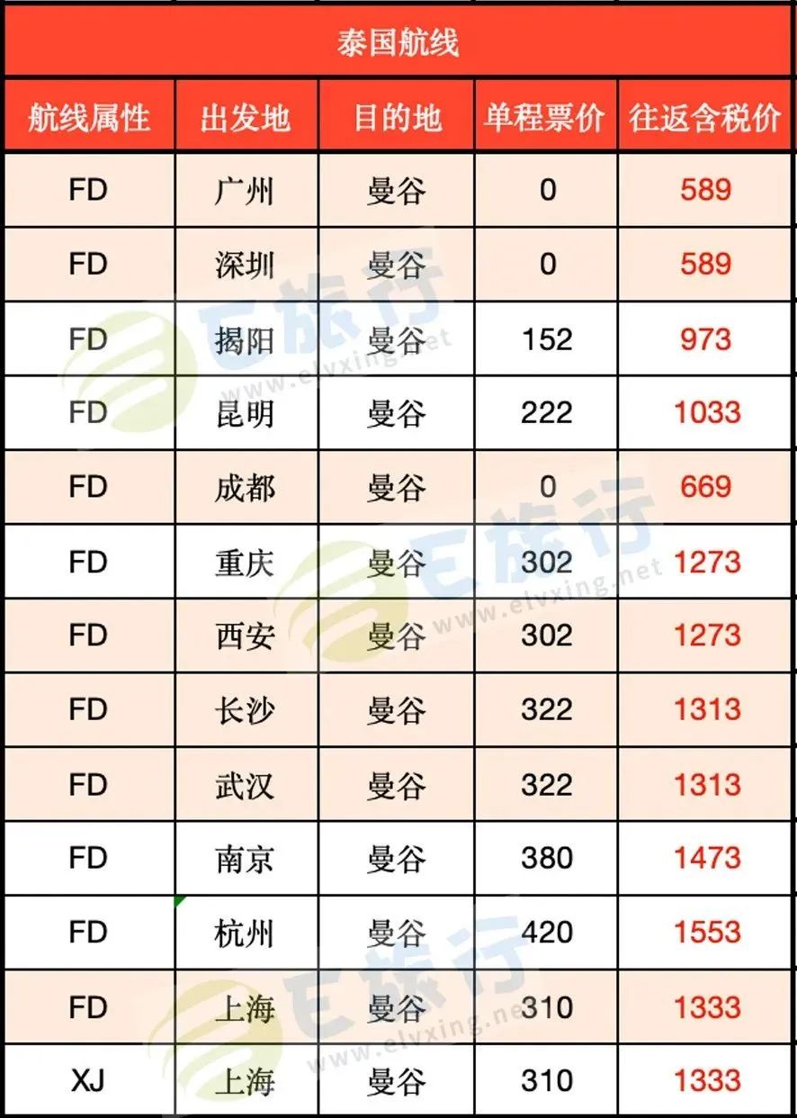 有媒体整理了航线的含税价格表,大家可参考?