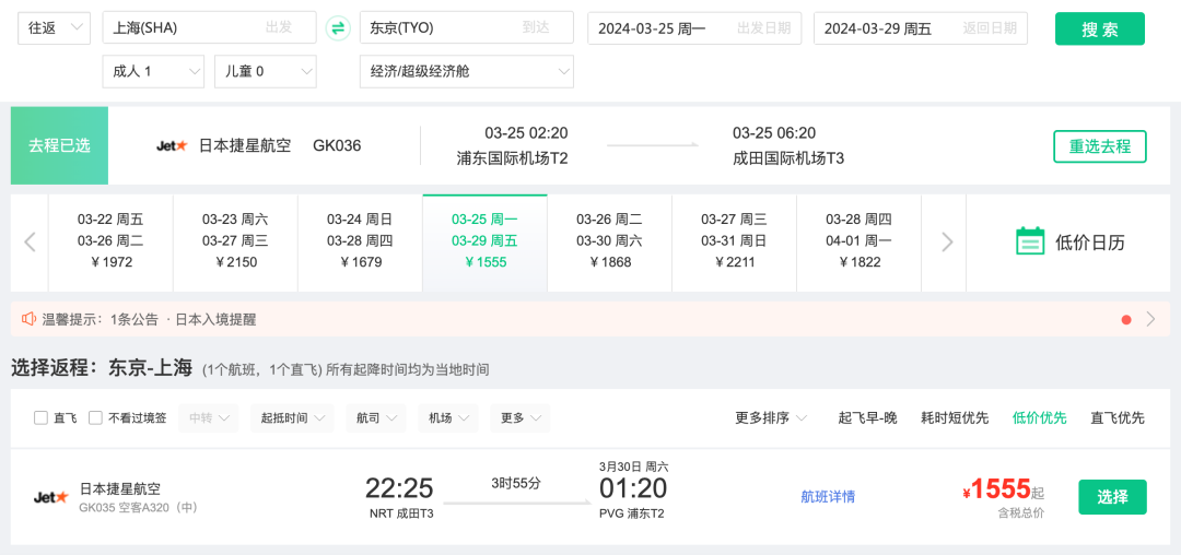 上海=东京,直飞往返1k5