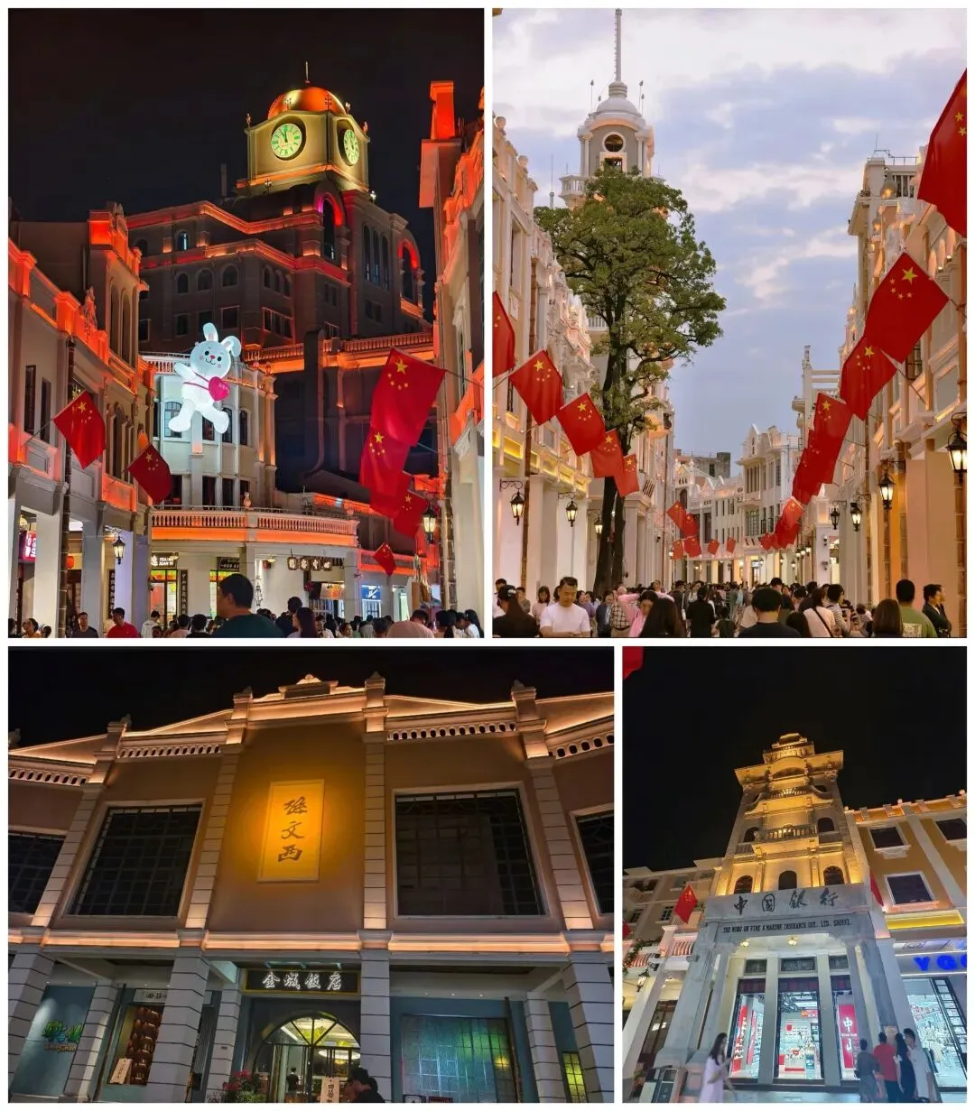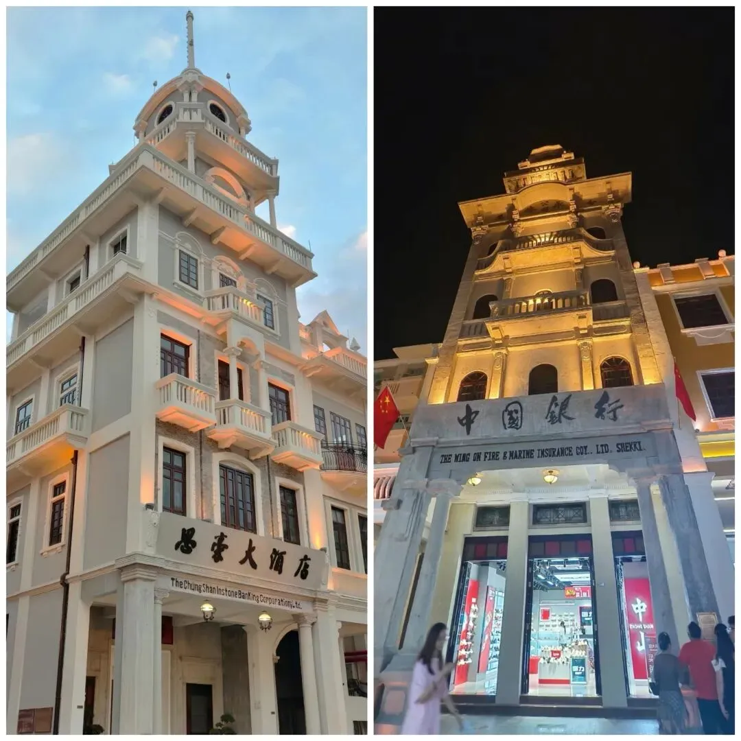 思豪大酒店旧址:曾是中山第一家银行,后改为酒店,顶部的钟楼是步行街的标志性景观,也是拍摄复古大片的绝佳背景。