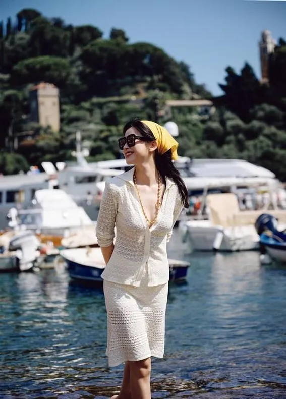 她可以大方地晒出幸福,也可以坦然面对岁月留下的细微痕迹。