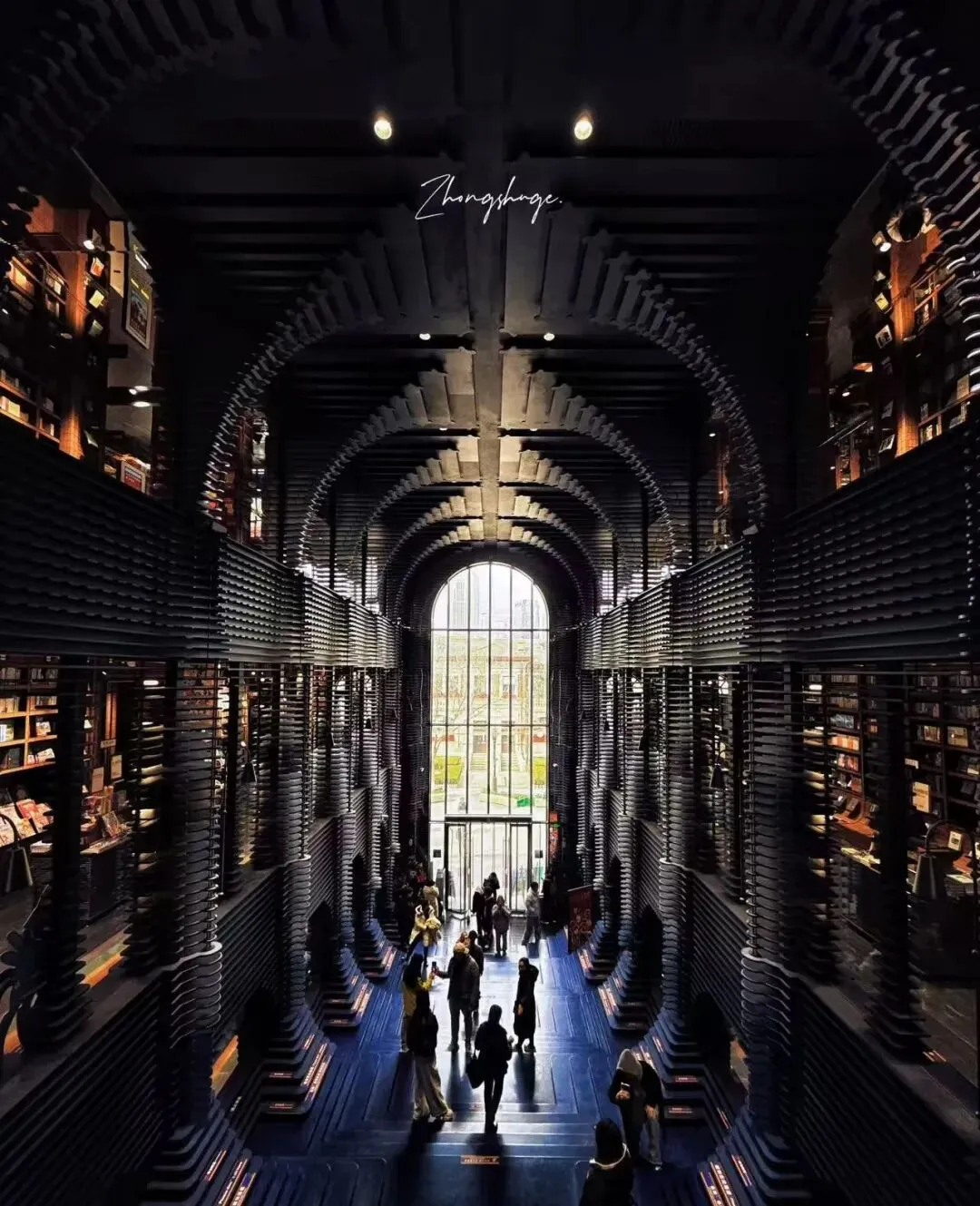 无限延伸的书海+镜面反射,像走进现实版霍格沃茨,震撼又梦幻