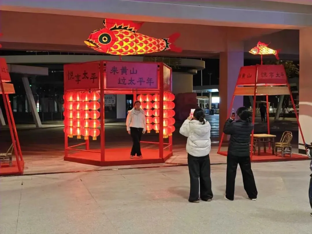 黄山区在马年新春升级“宠客”服务,于黄山西站出站口设置“黄山747”文创灯牌,将轩辕车会、吉庆鱼灯等非遗文化融入打卡点,让旅客下车即感受烟火气。此外,六角楼广场也已布置新春氛围,初一至初七连续七天有精彩演出,为游客提供拍照打卡的好去处。·盛振·