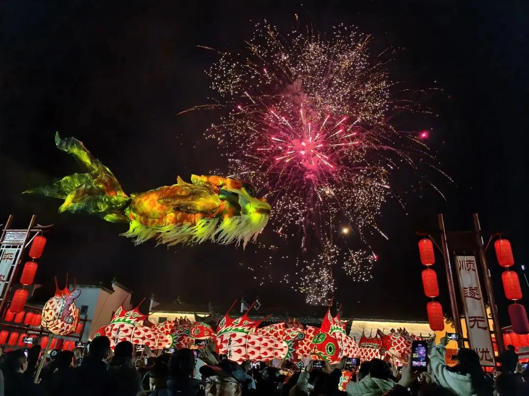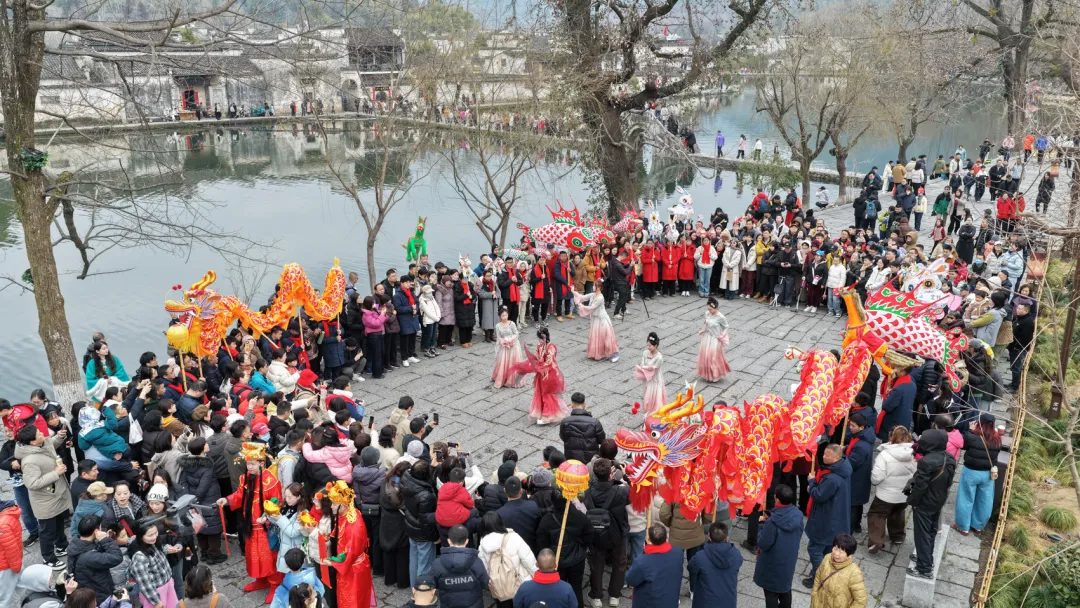 2月17日,农历大年初一,黟县宏村举办“宏村大拜年”民俗巡游活动。非遗花灯璀璨生辉,NPC舞蹈灵动喜庆,身着徽韵服饰的巡游队伍沿古村巡游送福,村民与游客共庆新春,在画里乡村中感受地道徽州年味。·汪澄·