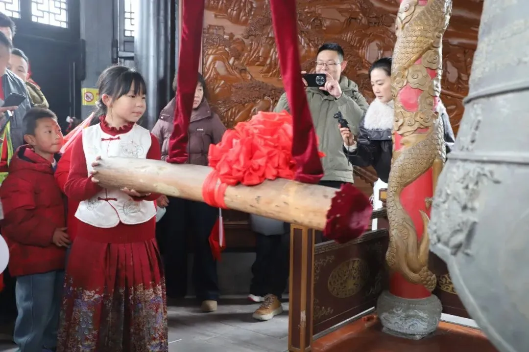 2月17日,农历大年初一,状元钟响·新春祈福诵读会在休宁县状元博物馆举行,市民游客在经典诵读与悠悠钟声中,共迎文化新春。·张妍 吴玉洁 戴稳笑·