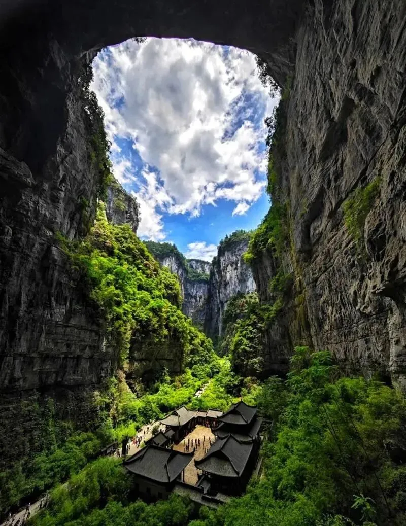 6.天生三桥:天生三桥形成于50万年至3亿年间,由天龙桥、青龙桥、黑龙桥构成亚洲最大天生桥群,桥面平均高度超246米。景区内悬崖360度旋转电梯垂直高度135.85米,采用德国进口设备分体运行。仙女山以高山草原和林海雪原景观著称,平均海拔1900米,建有滑雪场、露营基地等设施。芙蓉洞发育于寒武系和奥陶系碳酸盐岩中,全长2700米,洞内分布巨幕飞瀑、珊瑚瑶池等钟乳石奇观,被中国洞穴协会会长朱学稳教授评价为“地下艺术宫殿”。