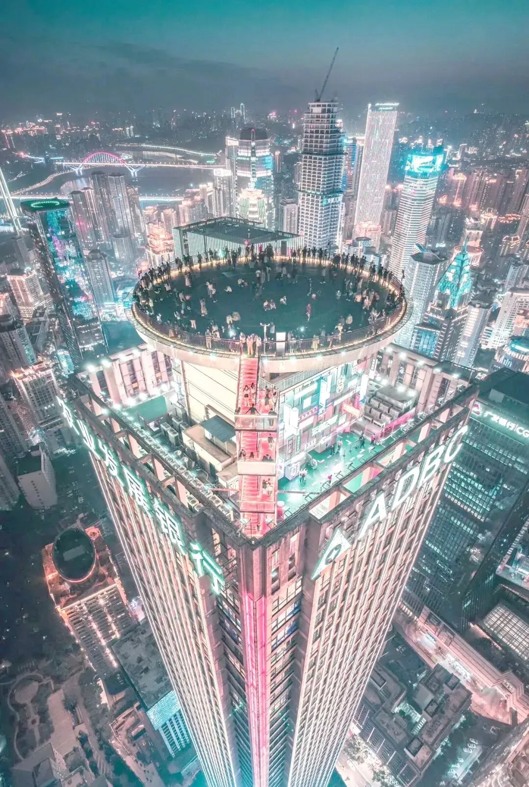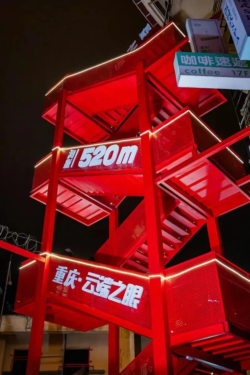 8.云端之眼观景台:观景台主体由67层室内区域与69层露天停机坪构成,提供360度全通透、无死角的俯瞰视野,可同时纵览长江、嘉陵江两江四岸的城市天际线与“重庆森林”全景。