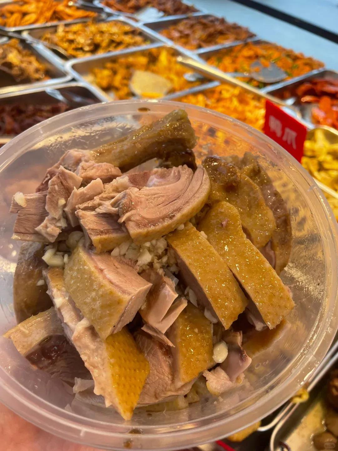 八角、桂皮、香叶等十多种香料卤制,香味浓郁。鸭肫脆嫩、鸭肠爽口、鸭肝入味,鸭翅鸭掌肉感十足。样样都是芜湖人餐桌上的佐酒好菜,夜宵摊上最常见。