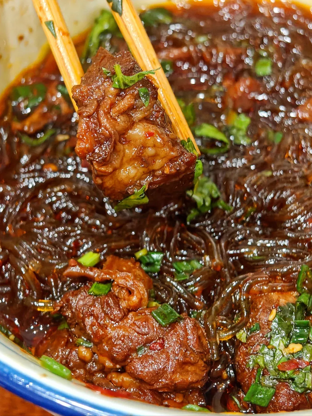 近几年流行的新宠,红薯粉丝软糯有韧性,很好嗦。筷子一翻,下面全是牛肉,分量扎实。汤底浓郁,粉丝吸饱汤汁,一口下去暖胃又饱腹,年轻人最爱。