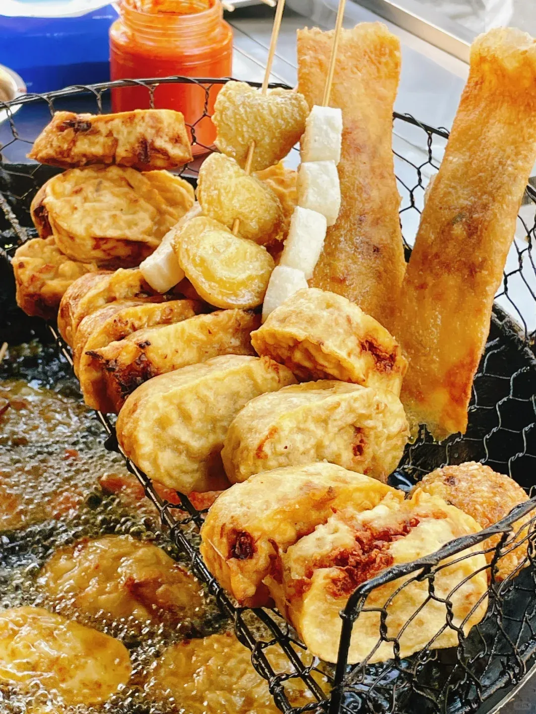类似江浙油墩子,白萝卜或南瓜切丝,也有藕丝版本。面糊入模,夹馅料封顶,连模油炸至定型。外皮香脆,内馅鲜嫩软糯,萝卜清爽南瓜香甜,解腻又满足。