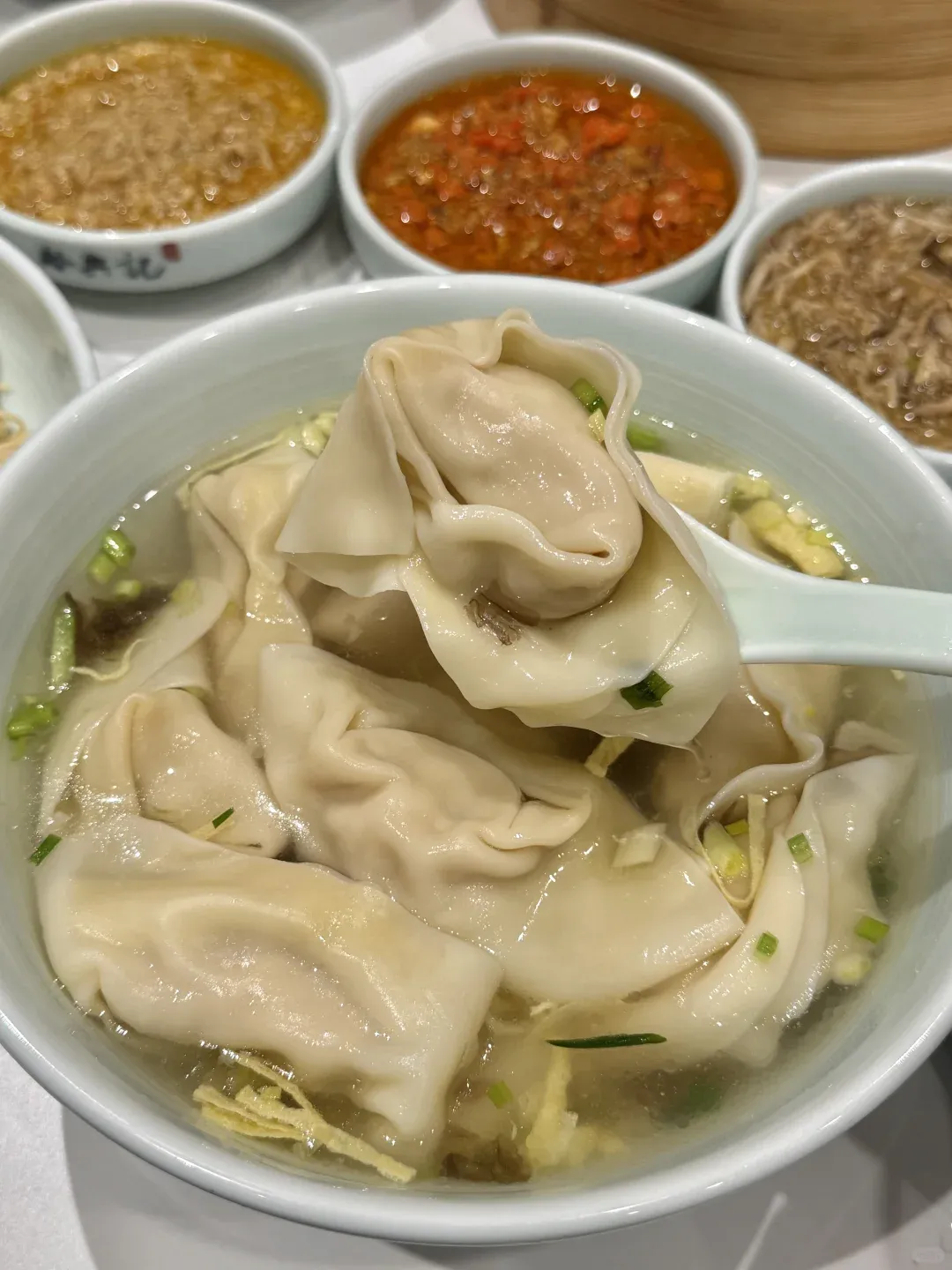 绝佳时令菜,新鲜刀鱼肉剁泥调馅包馄饨。薄如蝉翼的皮晶莹剔透,夹起放入口中,鲜美滋味瞬间爆发。馄饨皮爽滑韧性,刀鱼馅鲜甜,老饕倾家荡产也要吃。