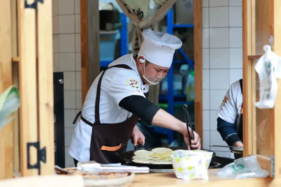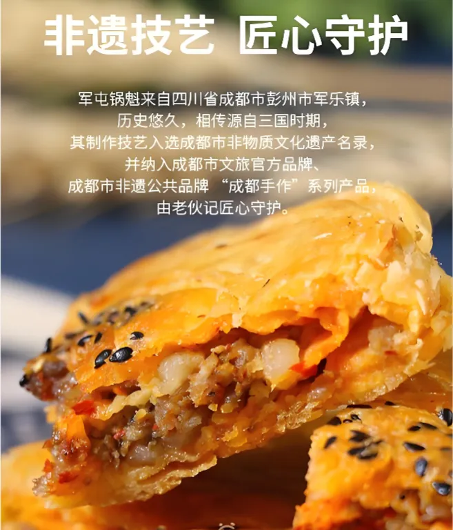 非遗身份:彭州城市味道,工匠精神活招牌时间地点:春节,“天彭雅韵”文化创意板块咋个耍:老师傅现场揉面、抹肉馅、煎烤,热腾腾的锅盔掰开,酥得掉渣。不是卖货,是展演——把手艺摊开给你看,比广告服人。