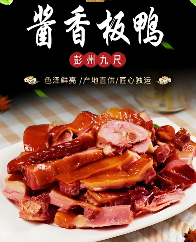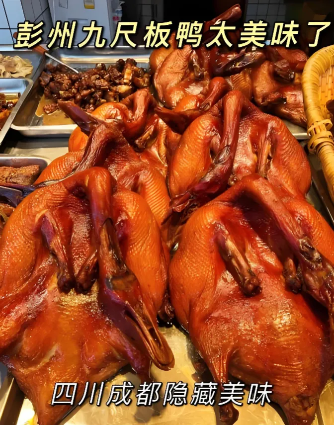彭州腊味三绝,缺一不可。九尺板鸭用柏树枝、稻谷壳熏,肉质紧实;军屯锅盔过年做成“福”字形状;敖平香肠必须本地跑山猪,三分肥七分瘦,麻辣鲜香是年夜饭桌上的硬通货