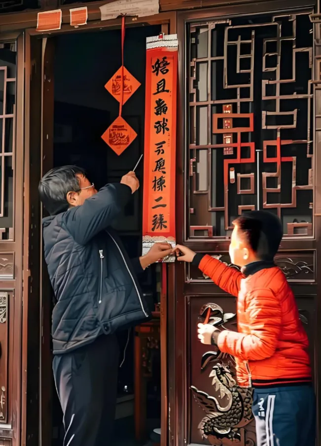 腊月廿八,全家老小齐上阵。窗户从里往外擦,把不好的东西“推出去”;春联必须在中午12点前贴完,据说福气来得最快。