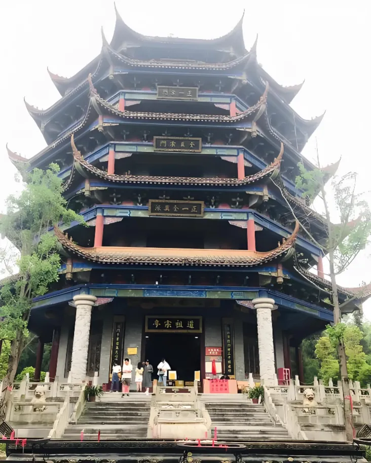 观后竹林深处,七八个天然“静坐石台”,清晨打坐半小时,听竹涛鸟鸣。观内止静斋可预约修行住宿,含早课素斋。