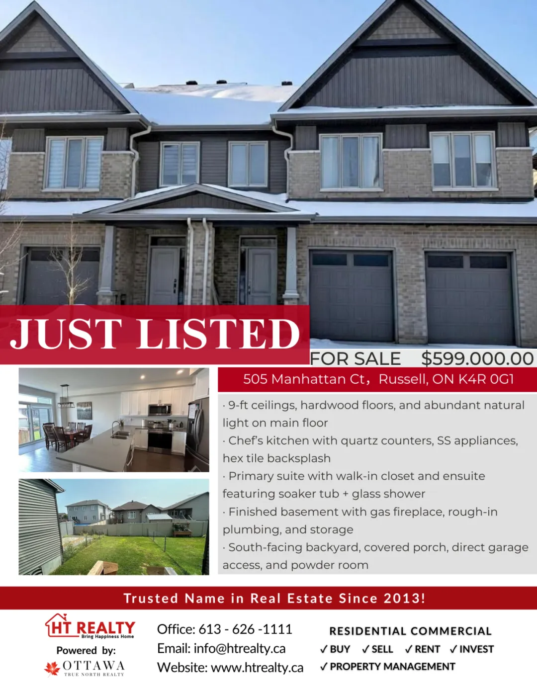 📍 地址:505 Manhattan Ct, Russell, ON💰 售价:$599,000