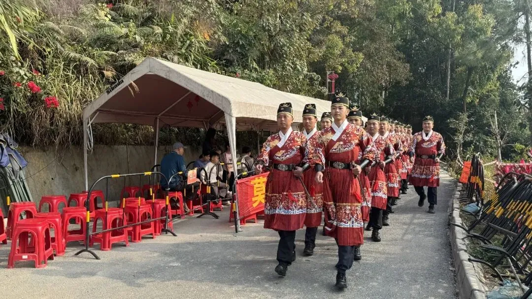 在这片欢腾景象中,一支身着传统汉服的队伍格外引人注目——他们是来自高要区金龙应急大队的队员们。这支汉服巡防队,既为景区增添了一道独特的“人文风景线”,也让传统文化在现代生活场景中焕发出新的温度与光彩。