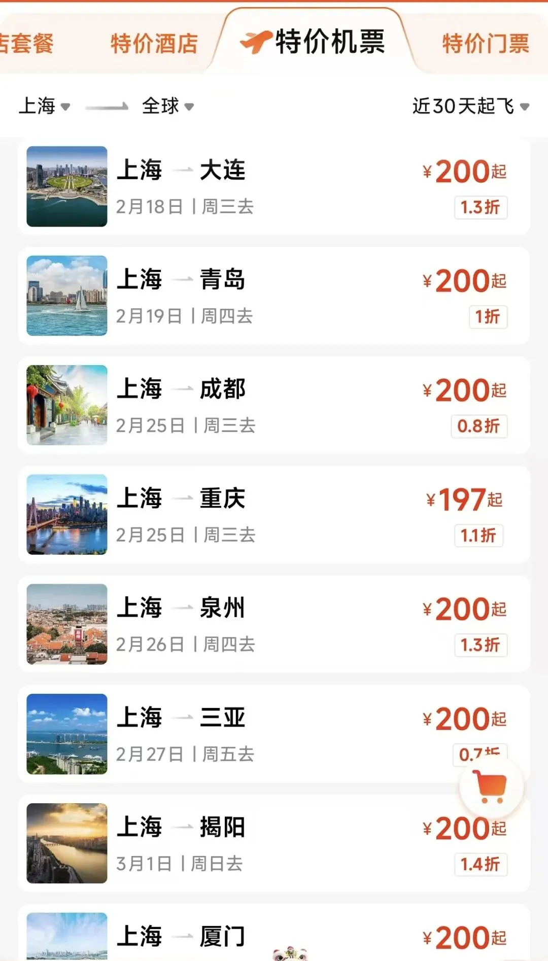 价格“腰斩”!上海到热门旅游目的地,机票仅需300多元!