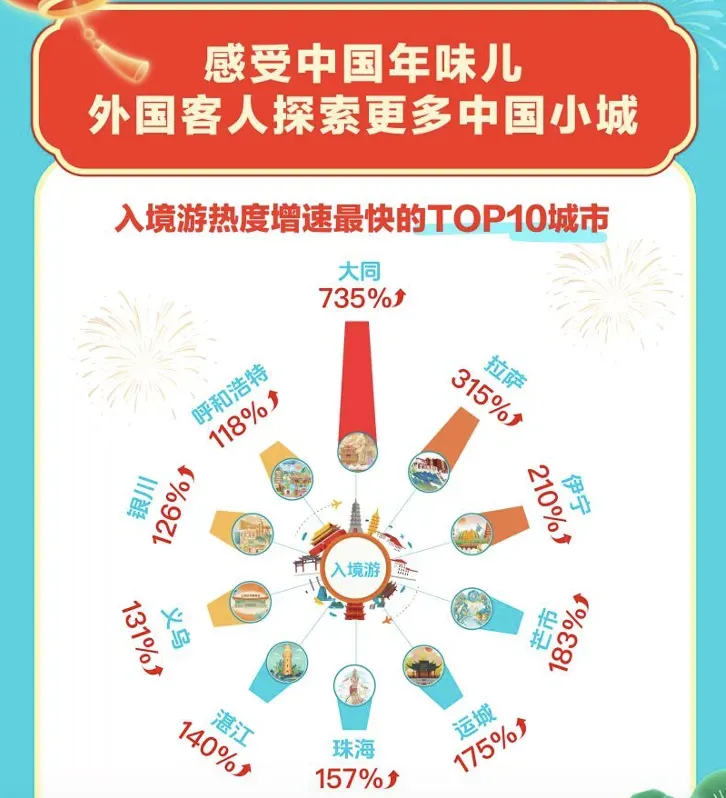 随着中国对越来越多国家开放免签,去哪儿数据显示,截至2月17日,春节期间使用非中国护照预订国内航班的数量同比去年增长两成。TOP10目的地城市为上海、北京、广州、成都、深圳、厦门、海口、重庆、武汉和哈尔滨。