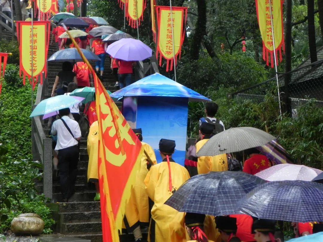 白云区的郑仙诞此次上榜“广州十大非遗节庆活动”,郑仙原名郑安期,又称安期生,秦代琅琊人。相传秦末时,郑安期云游至南粤白云山并隐居于此,悬壶济世、拯救民众。一次,郑安期在白云山蒲涧采集仙草九节菖蒲时,不慎跌落悬崖,被仙鹤救起,飞升成仙。此后,郑安期的事迹和传说在白云山周边地区流传开来。后人还在白云山上建立了郑仙祠,并将他飞升之日即农历七月二十五日定为郑仙诞,每年诞期登山礼拜,表达对其尊敬之心。