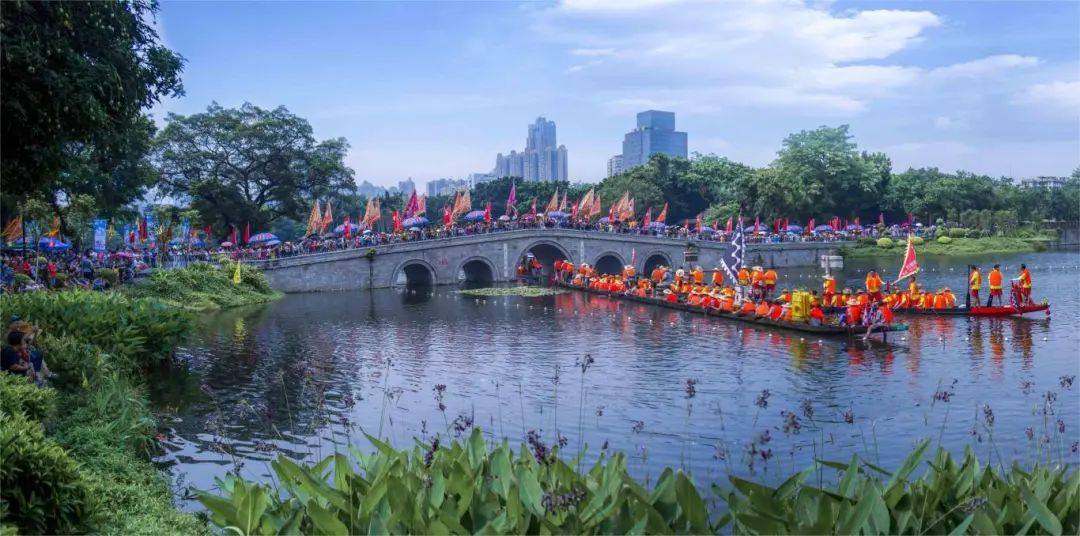 到了端午节,广州市内的扒龙舟时常会火上热搜。扒龙舟是一种与端午节相联系的传统水乡民俗。明清时,广东官方和民间的端午节赛龙舟活动已很普遍。1994 年,广州市人民政府正式把端午节定为龙舟节。