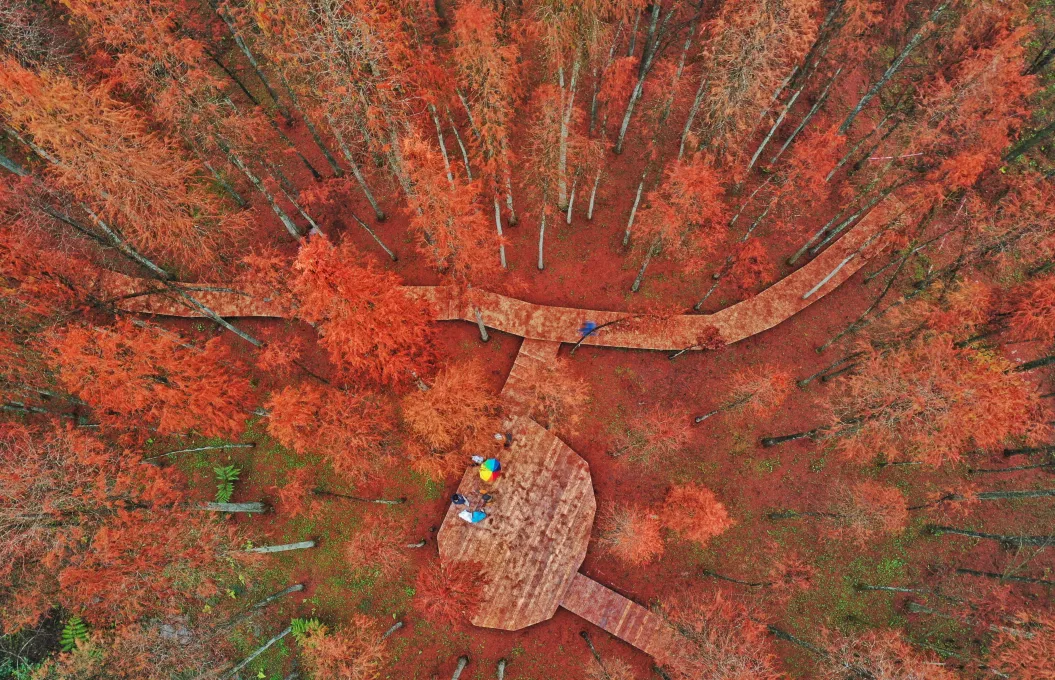 湿地是“天然氧吧”,步道穿泛黄林地和清澈水域,能听布谷鸟鸣,偶见“小野兔跑过”,适合徒步后放松、慢跑。