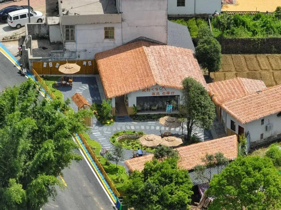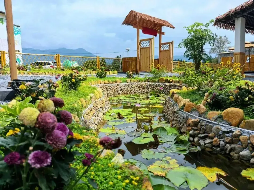 共富小苑就在大布镇里,是兼具烟火气与文艺感的田园居所。庭院里绿植环绕, “等风也等你” 透着松弛感。院外碎石地摆着竹桌椅,小雏菊点缀其间;室内透亮玻璃窗后,食客闲坐用餐,一旁挂着 “加油鸭” 萌趣布帘。整体像乡野里的治愈小筑,烟火气裹着文艺感,是村里的惬意歇脚处。