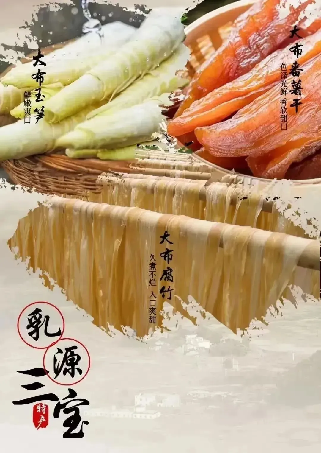 腐竹-“久煮不烂、豆香馥郁”、笋干-“清香爽脆、久炖不绵”、番薯干-“色泽金黄、甜糯适中”,是南岭生态馈赠的味觉瑰宝,更是千年非遗技艺的活态传承。