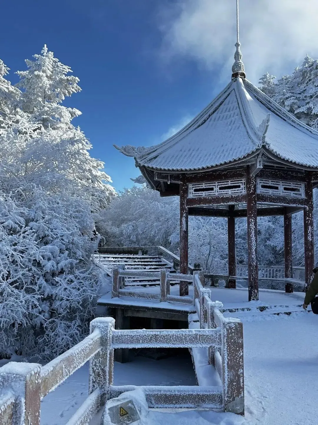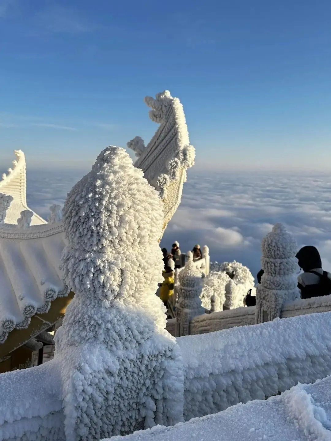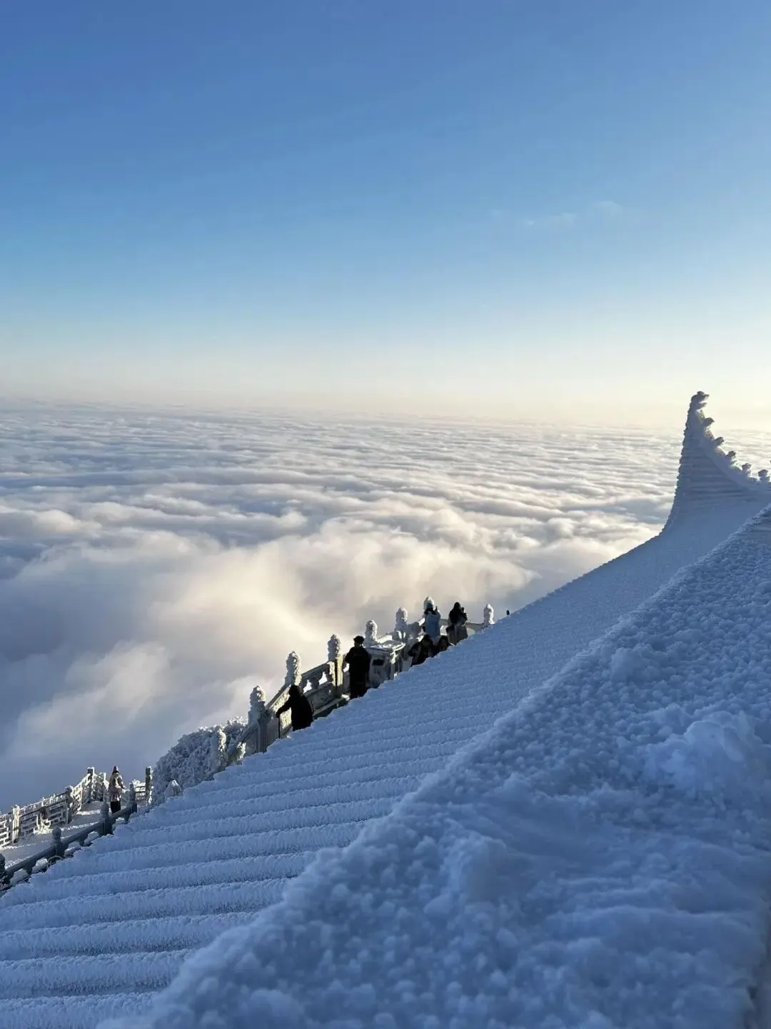 雪后的峨眉山真的值得奔赴!每一处风景都像精心雕琢的画卷,南方孩子的看雪梦在这里完美实现~