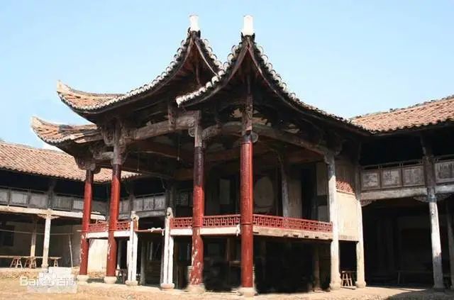 3.祝氏宗祠,位于广丰区东阳乡龙溪村,属“国家级文物保护单位”,它始建于明成化年间(1465~1487),清康熙、乾隆两朝有三次较大规模的扩建。坐北朝南,占地3.78亩。祠分三进,中轴线上自南而北依次为一进戏台、二进中厅三进享堂。戏台面朝中厅,台前有宽敞的前院,两侧厢房为二层结构建筑,跑马楼廊与戏台相通。中厅和享堂之间是后院,有古树二株,苍老拙朴,郁郁葱葱,为古祠增添几许风韵。两侧厢房,称“报功”和“崇德”,为褒彰祀奉乡贤和名宦而置。三进享堂则是供奉祖先神位之处。祠侧还有客房、膳堂、马厩等,附属建筑,一应俱全。是江西省保存最完整的宗祠建筑之一。