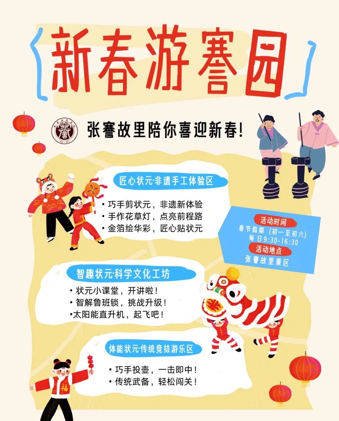 张謇故里景区:参与“状元登科启新岁”主题活动,体验非遗手作、科学工坊等互动,深度了解张謇文化,感受状元文脉的独特魅力,带孩子的家庭可重点打卡趣味研学体验。