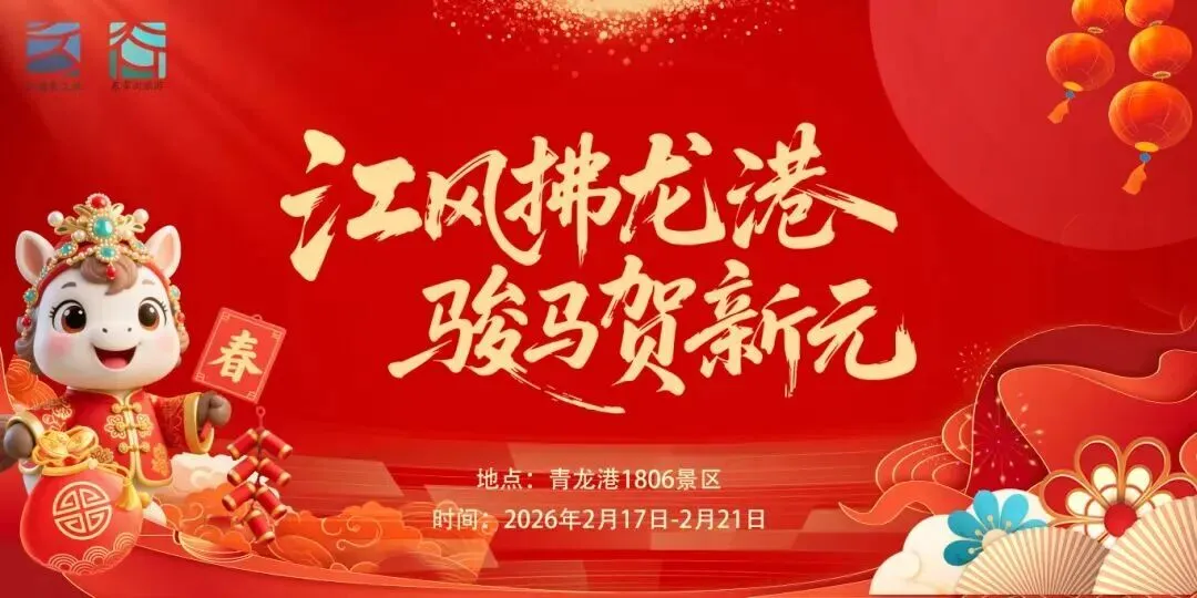 青龙港1806景区:驱车15分钟可达,逛“骏马送福乐江潮” 民俗游园会,打卡“潮趣年集”和“福游满园”两大点位,吃特色美食、玩互动游戏、看舞台演出,感受传统年俗与现代潮玩的交融。