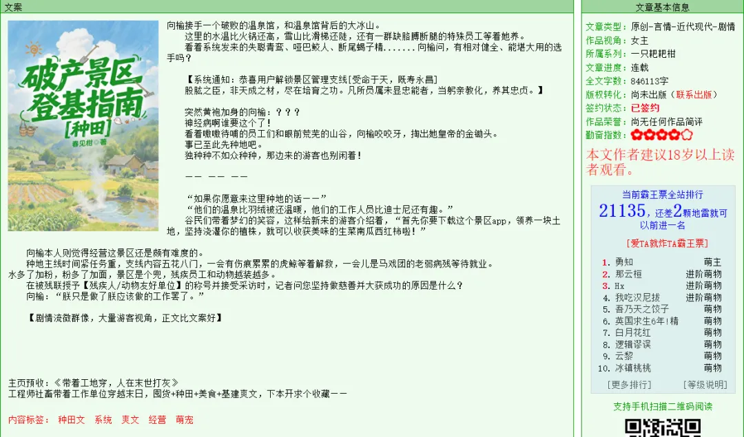 2.8w 收藏|《破产景区登基指南[种田]》by春见柑 喜欢种田的有福了各位!