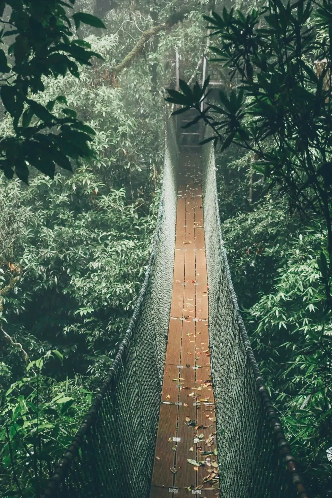 最让人挪不动步的是那些荡桥。窄窄的木桥悬在山林之间,脚下是深潭,走起来左摇右晃,小孩在前面跑,桥晃得更厉害,他回头笑,脸被阳光分成两半。那一刻忽然觉得,城市里攒下的那些焦虑,好像都掉进桥下的水潭里,没有回响。