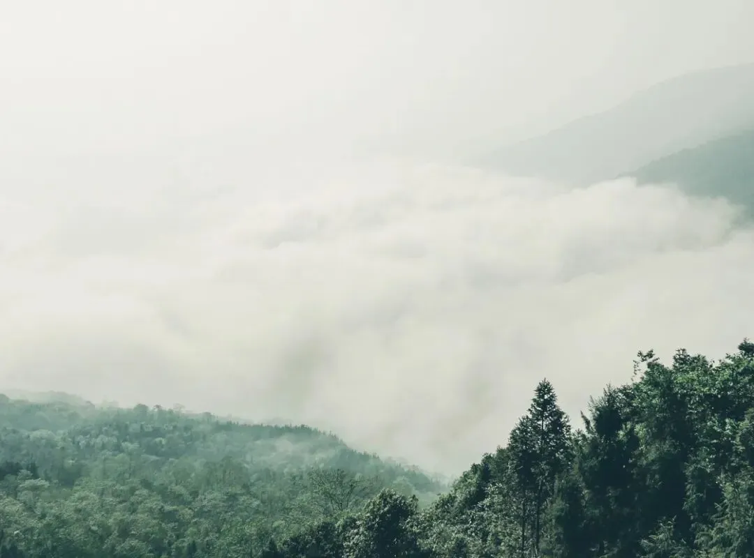 县城到大围山,开车不过一首歌的时间。观光车沿着盘山公路往上爬,两旁的树越来越密,车窗外的绿色从嫩绿变成墨绿,再变成近乎黑色的苍翠。空气开始变凉,带着湿漉漉的重量。有人把车窗摇下来,想伸手够一够那些擦肩而过的枝桠,雾气却先一步钻进来,扑了满手满脸。