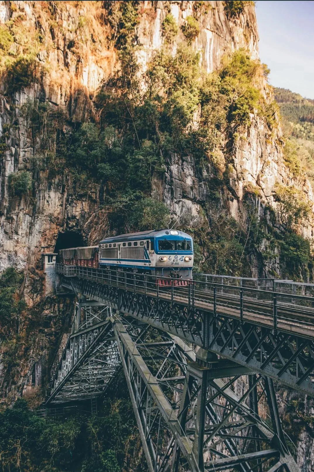 下午3点多,山谷深处传来汽笛。一列货车从隧道钻出来,慢得像在散步,驶过人字桥,驶过观景台前驻足的人群,又钻进另一端的隧道。整个过程不到1分钟,山风重新灌满峡谷,铁轨还在轻轻震颤。