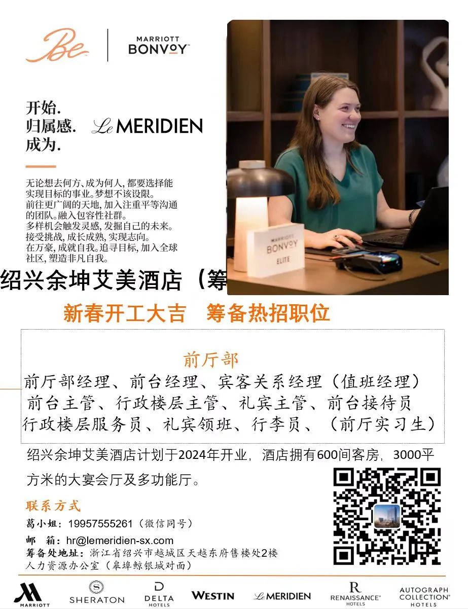 【筹备酒店招聘】绍兴余坤艾美酒店新春开工大吉筹备岗位招聘中