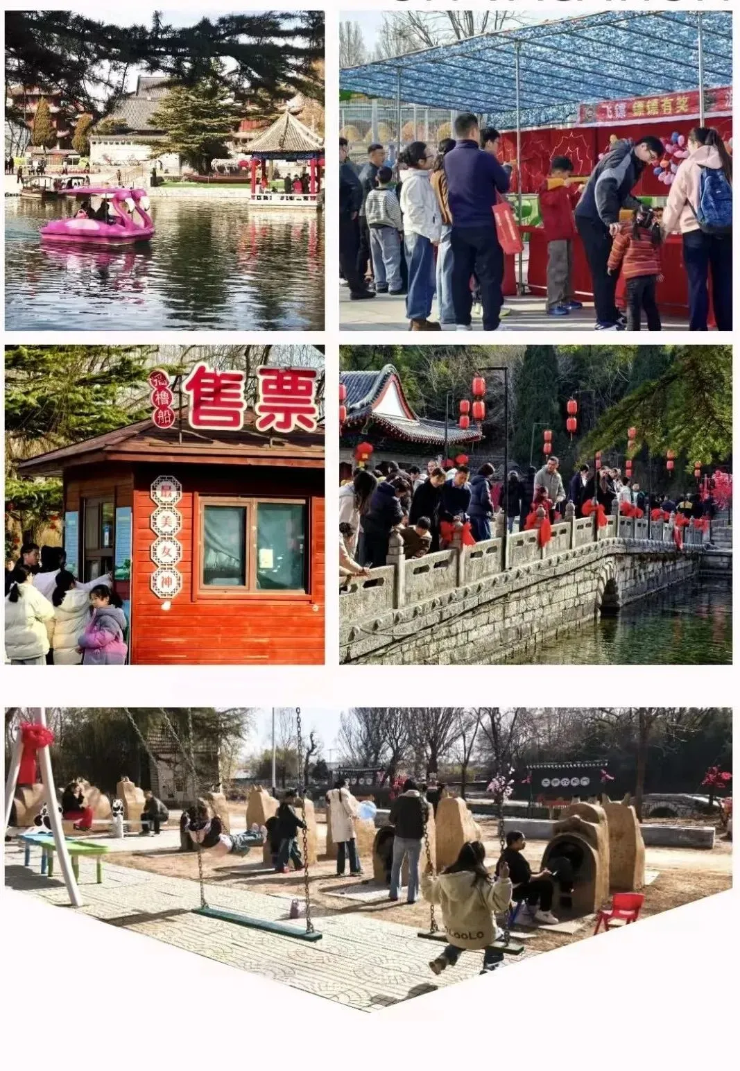 老龙湾景区同样人气满满!新年朝阳洒向湖面,游客纷至沓来,景区内红灯笼高挂、红绸飘扬,满目红火年味十足。碧波之上摇橹船轻摇,船妹子娓娓讲述龙湾故事;小白龙窑烤营地香气扑鼻,烤地瓜甜香四溢,孩子们嬉笑奔跑,欢乐满盈。江南古亭旁,湖光山色与游人相映成趣,绘就一幅醉人的新春山水画卷。