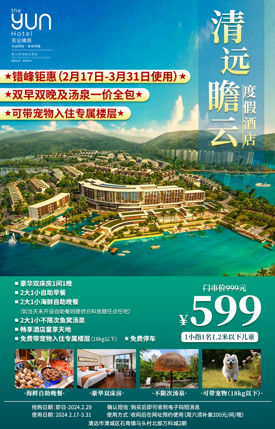 599元入住清远瞻云度假酒店,包含自助早餐+自助晚餐+公共区门票