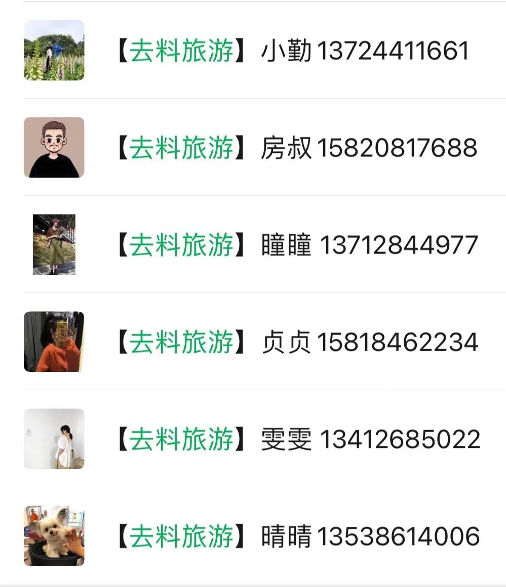 如你已经添加以下其中一位【去料旅游】客服