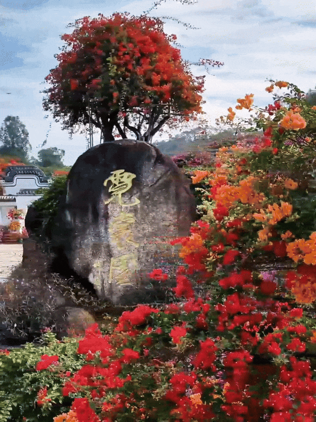 马岭观花植物园颜值担当、必打卡点——霓裳园!3000+品种三角梅汇聚成彩色瀑布,从镬耳墙头倾泻,在镂空花窗旁摇曳,与青砖黛瓦相映成画。古风写真或日常打卡都超出片!