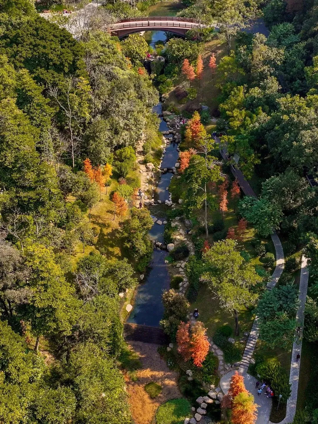 云溪植物园以“山水相融”的自然美学为设计理念,营造“望谷、溯溪、赏园、观山”多重体验。春有新优花卉争奇斗艳,夏有睡莲轻曳池中,秋有落羽杉染红溪畔,冬有珍稀植物傲然挺立,堪称“四时景不同,步步皆画卷”。