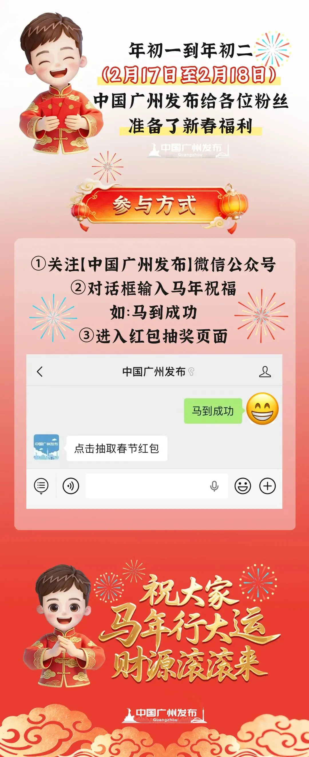 2026年广州白鹅潭春节烟花汇演以“福马迎新春 湾区启新程”为主题,这场以天为幕、以水为台、以城为景的视听盛宴,不仅用漫天华彩点燃了岭南新春的喜庆,更以璀璨光影描绘出一幅广州在“十五五”开局之年奋楫争先、湾区携手共赴新程的壮丽画卷。