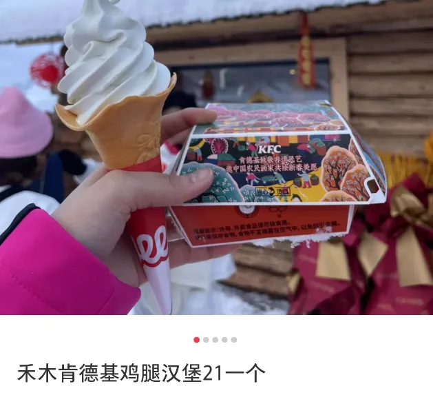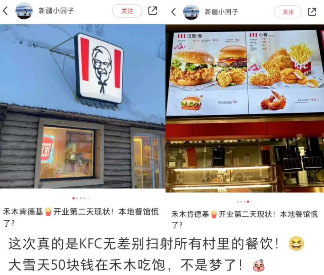 之前禾木的肯德基一开,大家看到菜单上熟悉的定价、二十块一个的汉堡,感动得像他乡遇故知了。