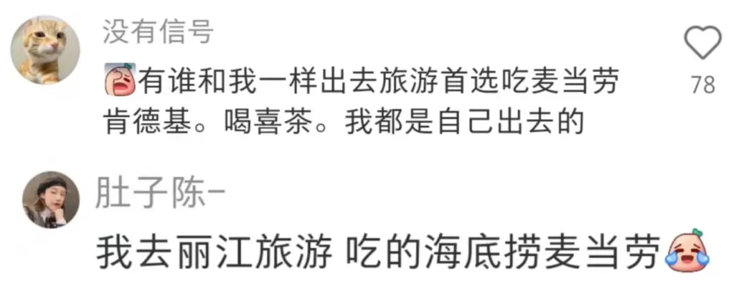 相关评论区里很多年轻人分享了自己在景区吃连锁店的经历,惊讶地发现“原来喜欢这么干的不止我一个”。