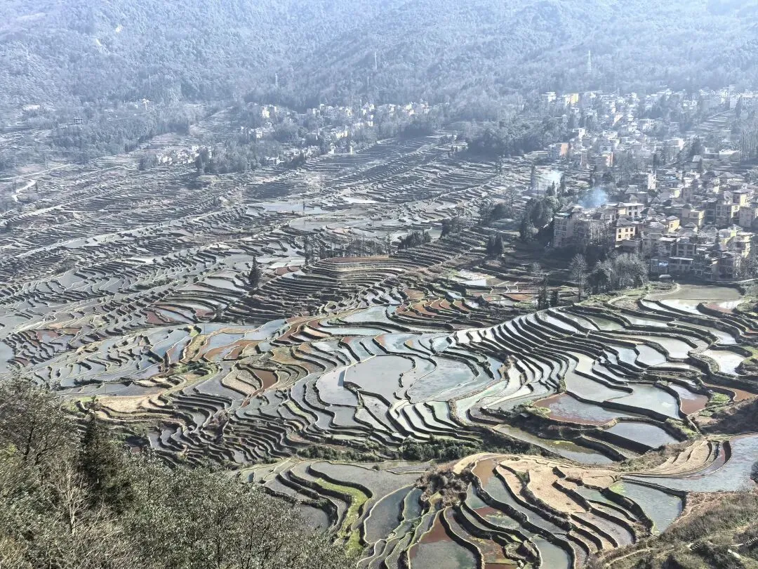 我已规划好回程路线,下一站是文山州砚山县。驶离元阳梯田时,沿途看到不少梯田观景台,许多人在此驻足欣赏梯田。这里的梯田分布范围很广,覆盖多个村落,景色连绵不绝。