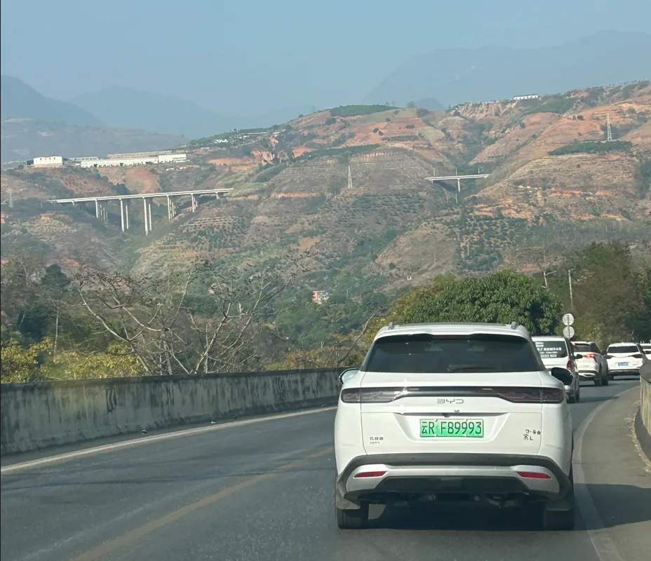 从元阳梯田前往砚山县的路上,车辆在高速穿越高山峡谷。原来整个元阳地区位于哀牢山南端,山势险峻、落差巨大。高山之间,一条河水奔流不息,应该是红河的重要支流。