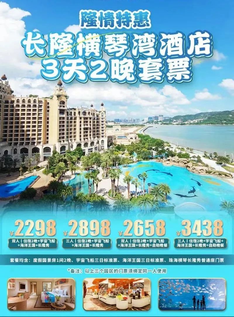 珠海长隆横琴湾酒店!3天2晚!畅玩宇宙飞船+海洋王国+长隆秀